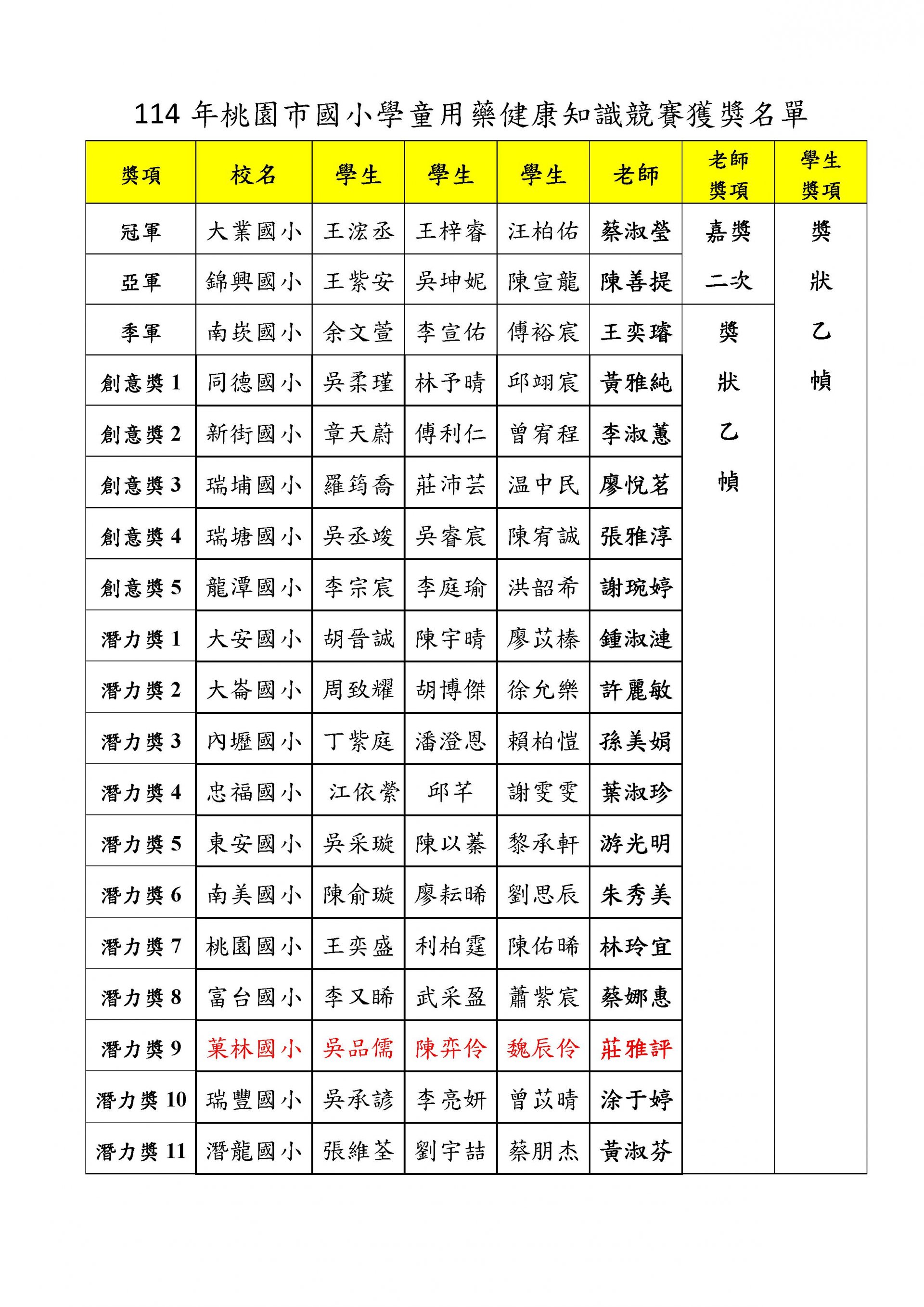 【2025全市國小學童用藥健康知識神農小學堂競賽】