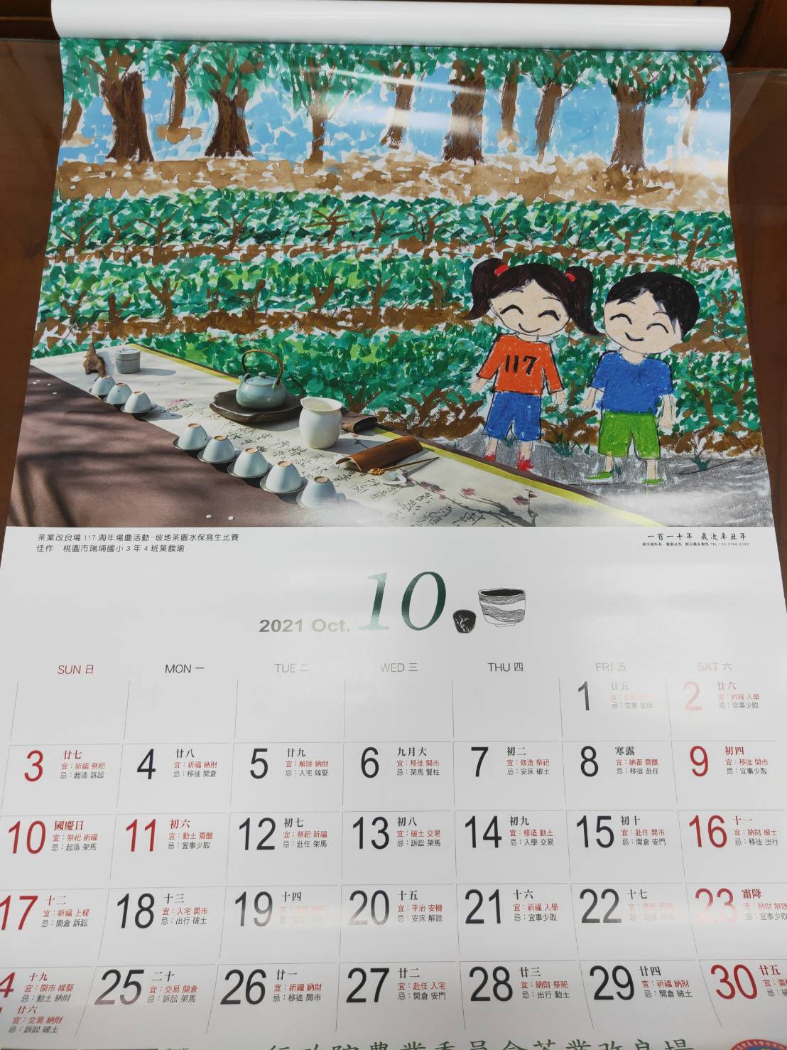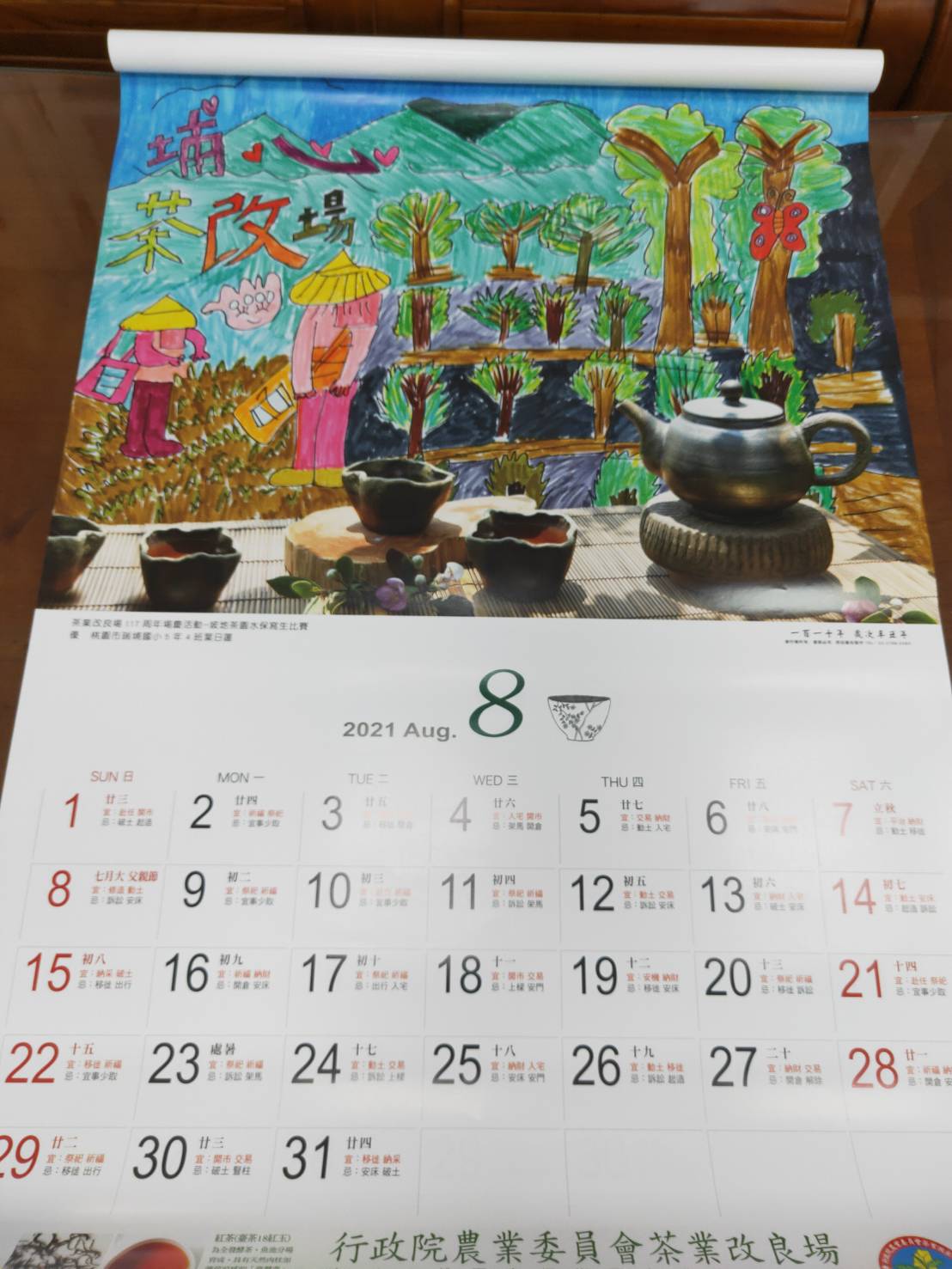 行政院農委會茶業改良場選輯場景照片*6以及學生寫生佳作*6製作成2021年度精美月曆正式發行,百裡挑一,內頁六張之中就有五張瑞埔學生的精彩作品入選。校長將在週二兒童朝會頒發紀念月曆給以下五位小畫家收存留念,請全校師生一起分享她們的榮譽和喜悅 !