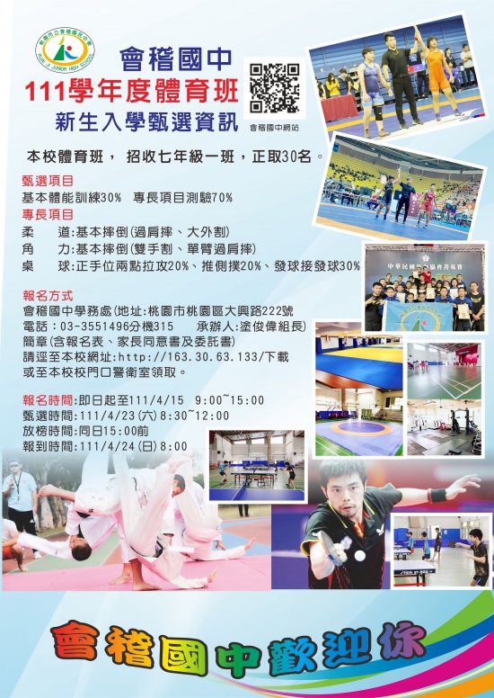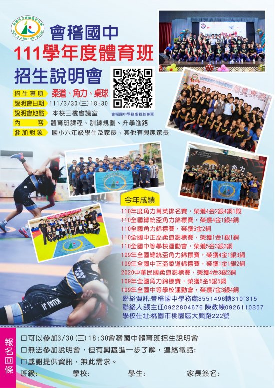 | 六、 | 本校體育班招生說明會謹訂於民國111年3月30日(三)晚間6時30分,假本校三樓會議室進行。 |