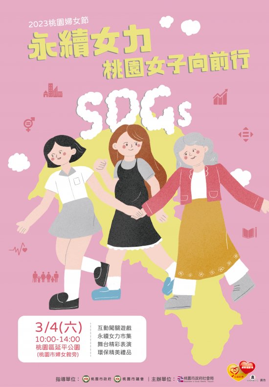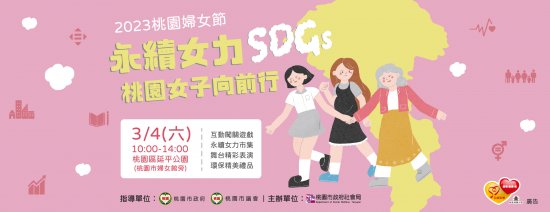 《永續女力‧桃園女子向前行》2023桃園婦女節3/4(六)10:00至14:00在桃園區延平公園熱鬧登場,有闖關活動、舞台表演、精美禮品等,邀請市民朋友共襄盛舉!
