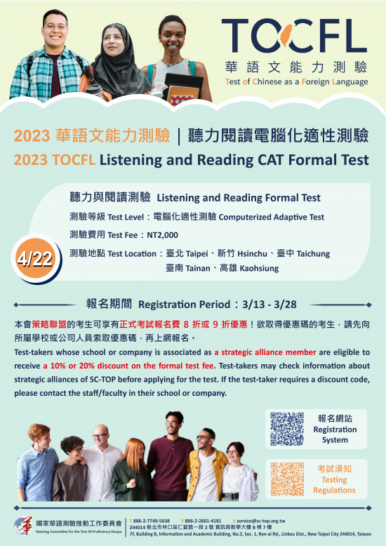 (一)為華測會策略聯盟單位,所屬僑外生可享九折優惠。