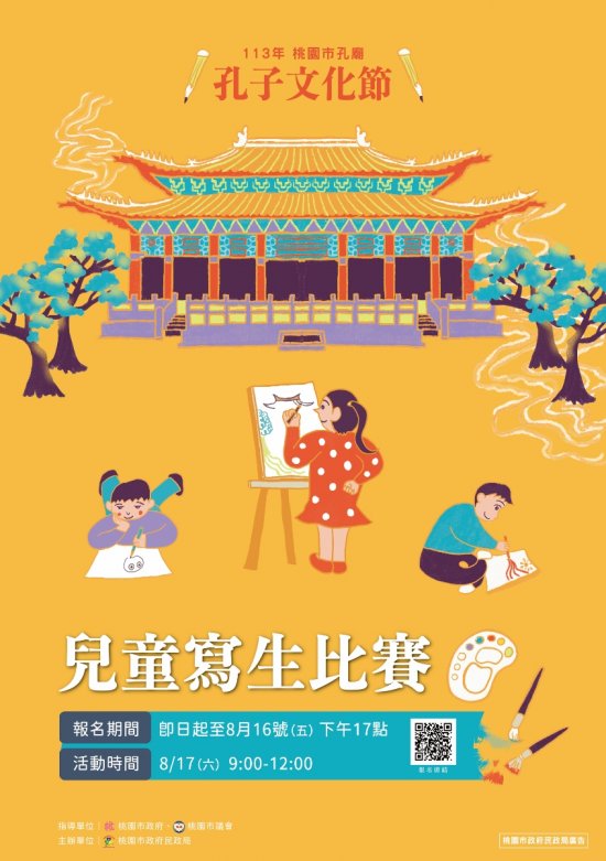 桃園市政府孔廟忠烈祠聯合管理所113年8月17日(星期六)辦理「113年孔子文化節兒童寫生比賽」
