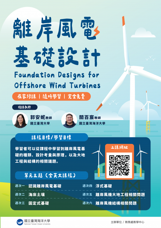 二、 | 為促進綠能發展,因應全球能源轉型趨勢,該校開設「離岸風電基礎設計」線上課程,希望提升學員對離岸風電基礎知識的理解,協助推動環境永續與綠能教育。 |