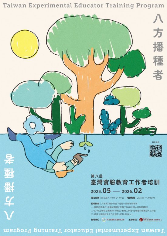 二、教育部實驗教育推動中心辦理全國實驗教育工作之推動, 並以專案培訓全國對實驗教育工作有熱情之實驗教育工作 者,相關資訊如下: (一)報名期限:即日起至2025年4月5日止。 (二)培訓期:自2025年5月至2026年2月,計十個月,培訓時 數約411小時,以隔週末日間及平日夜間為原則。 (三)課程內容詳如附件或掃瞄紙本生海報QRcode。 (四)報名連結:https://forms.gle/yJfJguNqfJHngVBn6(請 以google帳號登入)。 (五)過往課程紀錄請參見本中心官網:http://teec.nccu.edu.tw。 (六)臺灣實驗教育推動中心臉書粉絲專頁:https://www. facebook.com/TaiwanExperimentalEducationCenter。