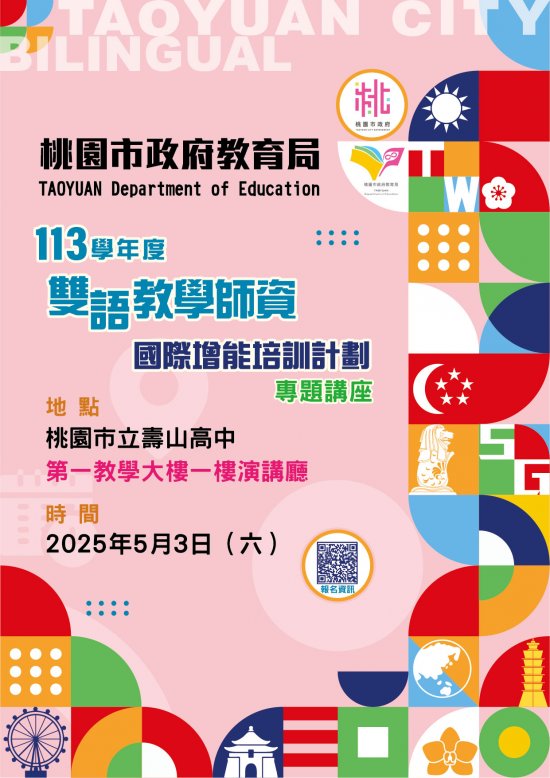 | 六、 | 檢附課發中心113學年度「雙語教學師資國際增能培訓專題講座」海報1份。 |