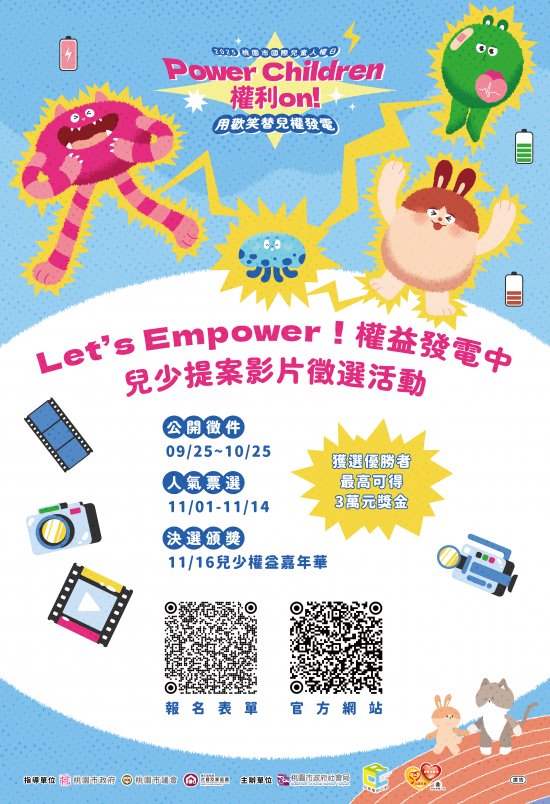 二、為落實兒少表意及參與公共政策的權利,邀請設籍或實際居住桃園市或就讀桃園市學校11歲(含)以上至18歲以下兒少,針對兒童權利公約政策、法規運行或各類行政事務運作等事項,以拍攝影片的形式,提出檢討及策進,並邀請大眾關注此項議題。